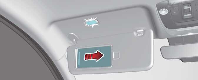 선바이저 램프 (사양 적용시) 선바이저 거울 커버를 열면 램프카 켜집니다. ODL3033095 주의 거울을 사용한 후에는 반드시 커버를 원위치하십시오. 계속 램프가 켜져 있을 경우, 배터리 방전과 선바이저 손상을 초래할 수 있습니다.