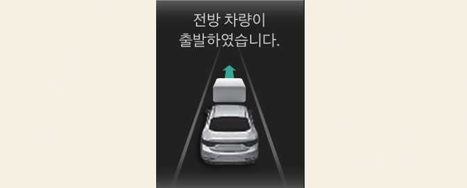 정차 중에 앞 차량이 출발하면 알림 문구가 표시되고 알림음이 울립니다.