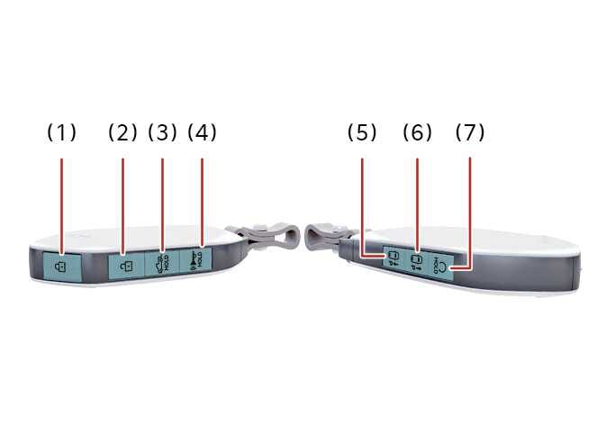 스마트 키 N_TK25C001 도어 잠금 도어 잠금 해제 테일게이트 잠금 해제 비상경보(알람) 원격 스마트 주차 보조 후진 (사양 적용시) 원격 스마트 주차 보조 전진 (사양 적용시) 원격 시동