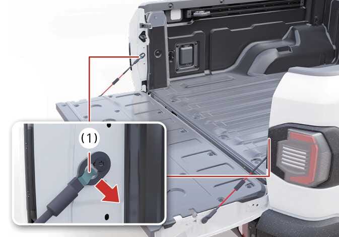 테일게이트를 약 45도의 각도로 열고 오른쪽 힌지를 빼내십시오.