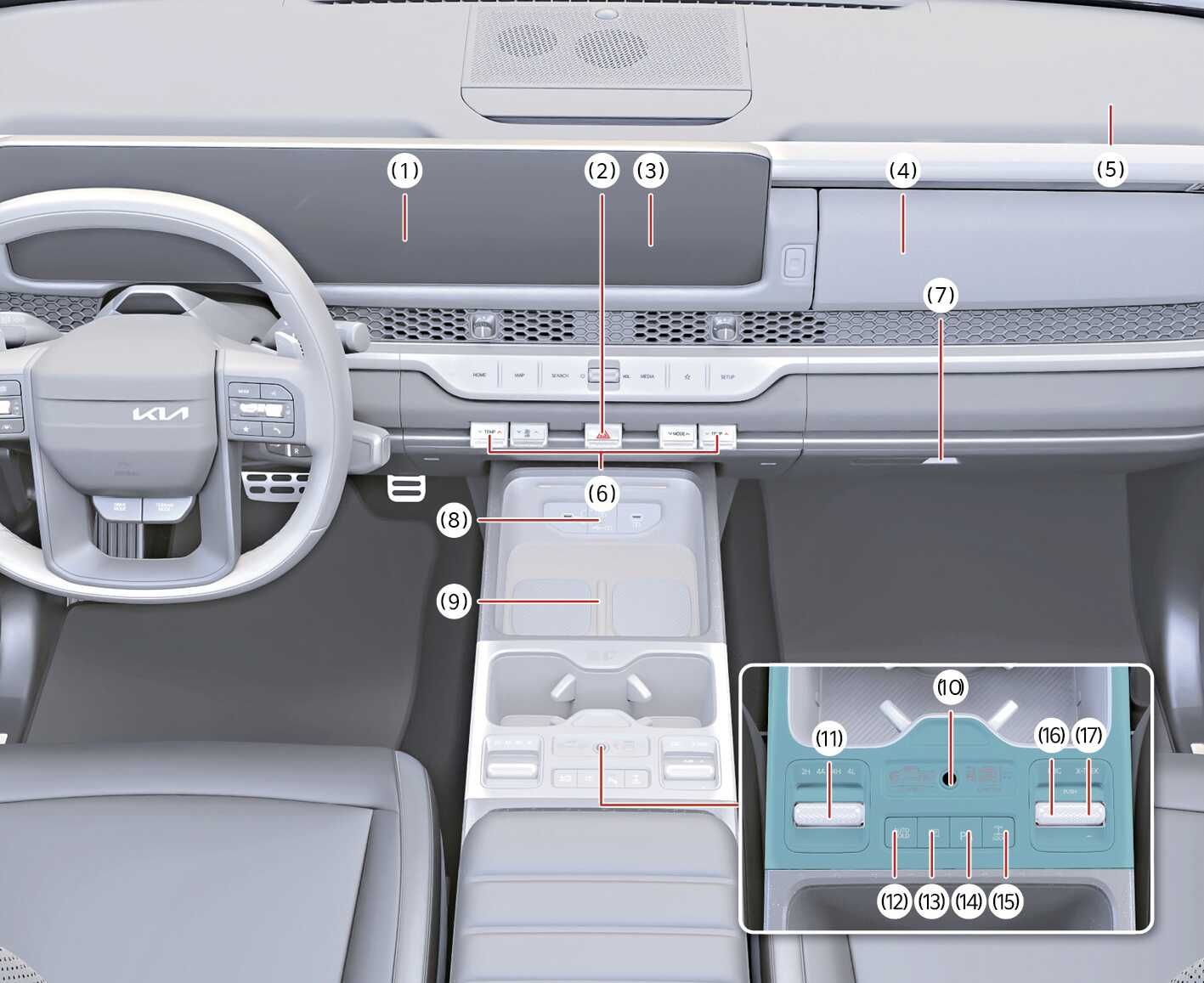 실제 차량과 다를 수 있습니다. (스위치의 형상 및 배열은 사양 적용에 따라 달라질 수 있습니다.)