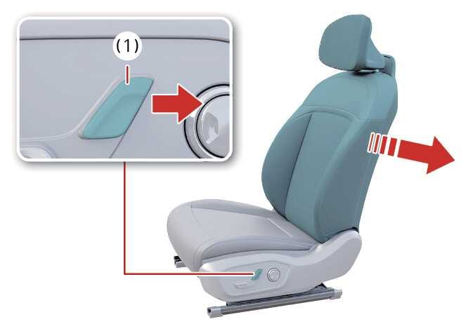 등받이 각도 조절 스위치(1)로 좌석 등받이를 뒤로 젖히십시오.