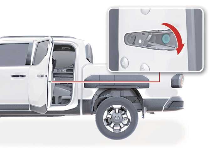 도어의 뒤쪽에 위치한 비상 잠금 장치에 비상 키를 넣고 차량 안쪽 방향으로 키를 돌리십시오.