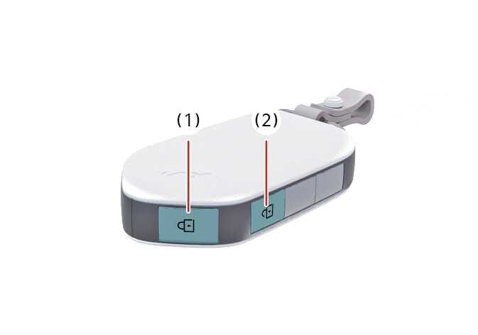 시동이 꺼진 상태에서 도어 잠금 버튼(1) 또는 도어 잠금 해제 버튼(2)을 약 3초 이상 길게 누를 경우