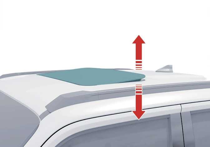 선루프 스위치를 위쪽으로 누르면 선루프 글라스가 틸트 상태로 열립니다.