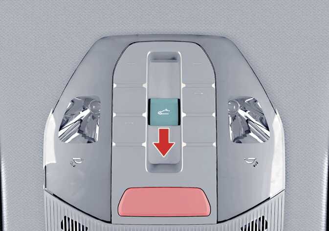 선루프 글라스가 닫힌 상태에서 스위치를 앞쪽으로 눌러 글라스가 살짝 한번 움직일 때까지 계속 눌렀다 손을 떼십시오.