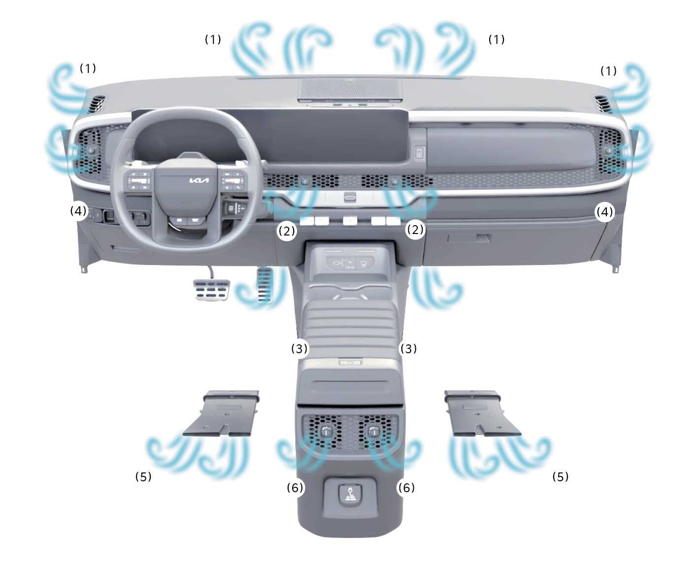 5, 6 송풍구는 주로 난방 시 사용하며, 겨울철에는 다소 미지근한 바람이 송풍될 수 있습니다.