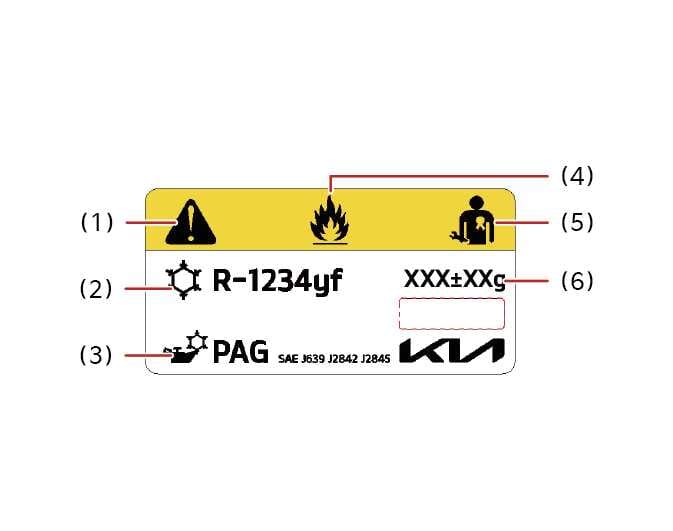 차량의 실제 에어컨 냉매 라벨은 그림과 다를 수 있습니다.