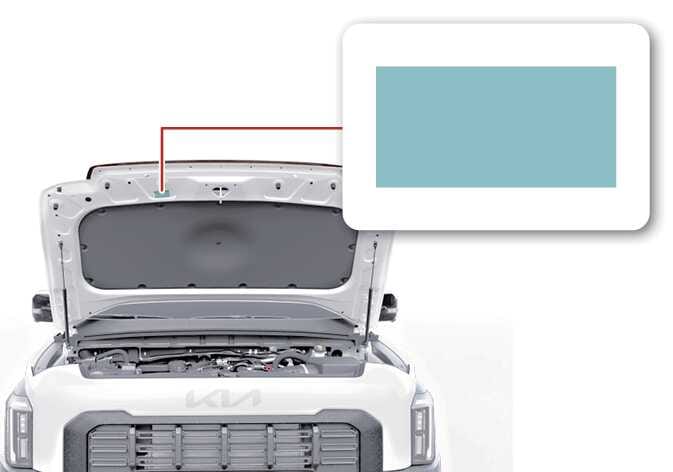이 차량은 친환경적인 신냉매 R-1234yf가 적용되어 있습니다. 신냉매는 기존에 적용되어 있던 구냉매 R-134a보다 지구 온난화 현상을 크게 줄일 수 있습니다. 실제 차량에 사용된 냉매 종류와 용량을 알 수 있도록 후드 안쪽에 사양 라벨이 부착되어 있습니다.