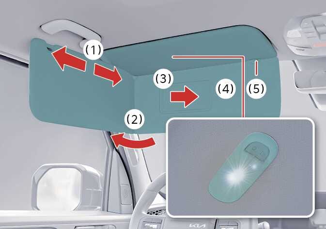 선바이저 안쪽의 커버(3)를 밀면 거울이 있습니다.
