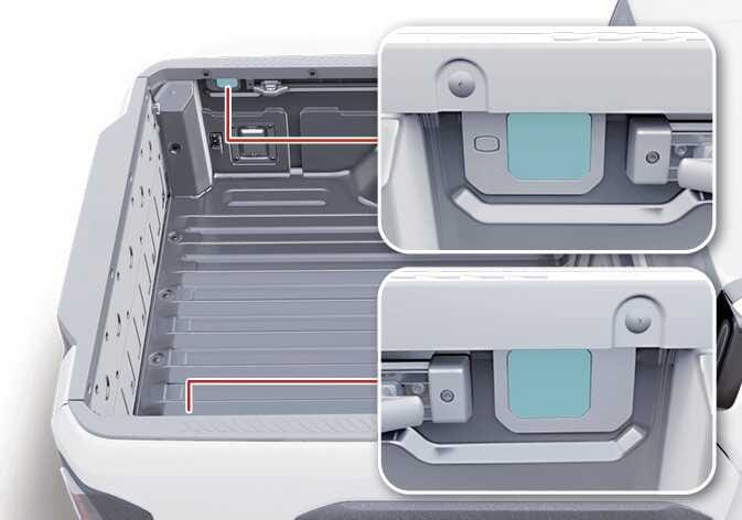 테일게이트의 개폐와 관계없이 좌측 베드 램프 버튼을 누르면 좌우측 베드 램프가 동시에 켜집니다.