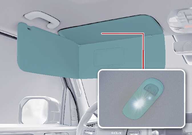 거울을 사용하신 후에는 반드시 커버를 원위치하십시오. 램프가 켜져 있을 경우, 배터리 방전과 선바이저 손상을 초래할 수 있습니다.