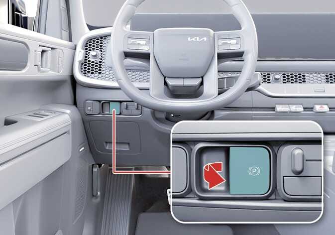 브레이크 페달을 밟은 상태에서 전자식 파킹 브레이크(EPB) 스위치를 당기십시오. 주차 브레이크가 체결되고 클러스터의 브레이크 경고등이 켜집니다.