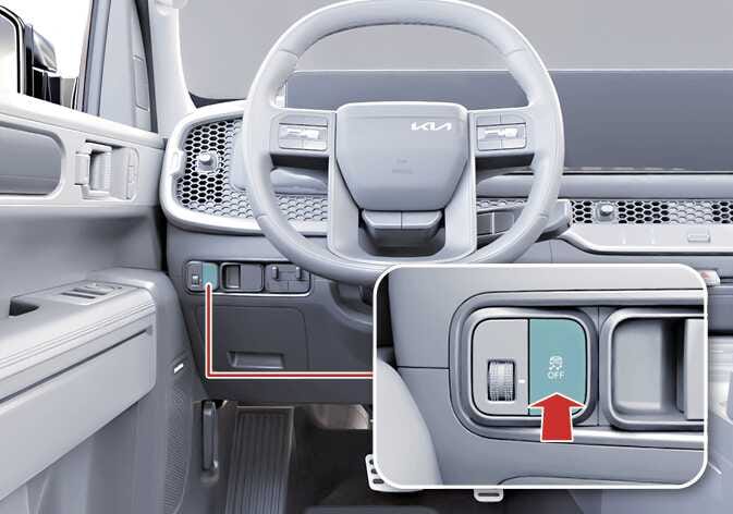 을 약 3초 이상 길게 누르면 부저음이 2회 울려 구동력 제어 기능과 브레이크 제어 기능이 모두 해제되며(OFF 2단계) ESC 작동 정지 표시등