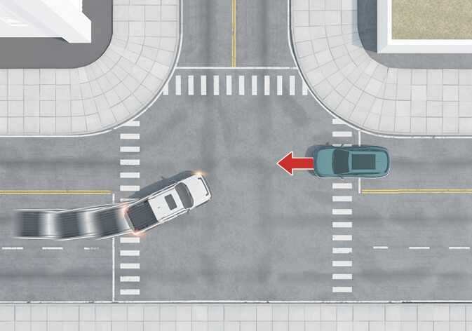 교차로 직진 시 좌우 방향에서 접근하는 차량과의 충돌 위험이 판단되면 충격을 줄이거나 회피하도록 제동을 도와줍니다. |