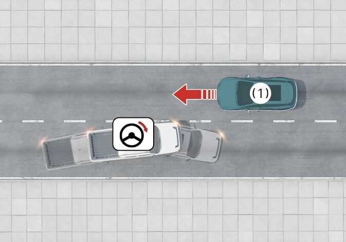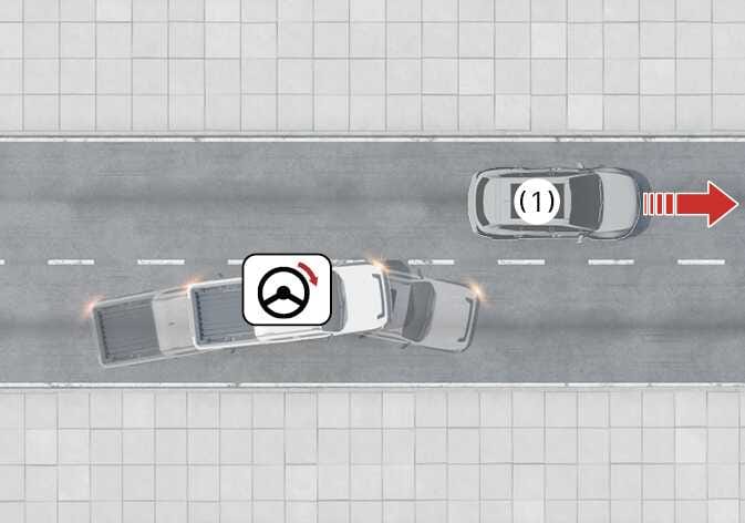 차로 내 전방의 차량, 이륜차, 보행자 및 자전거 탑승자와의 충돌 위험이 판단되고 운전자가 충돌을 피하기 위해 스티어링 휠을 조작하면 조향을 도와줍니다.