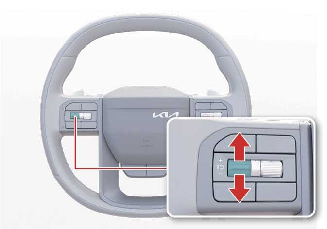 스위치를 아래로 길게 내리고 있으면 10 km/h씩 속도가 증가하거나 감소합니다.