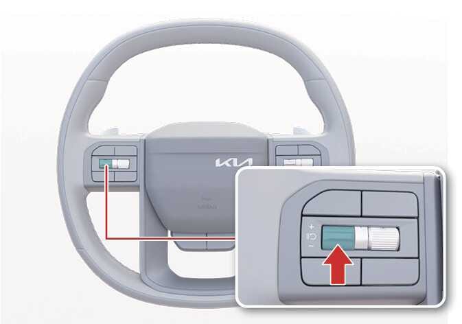 속도 제한 기능 작동을 일시적으로 해제할 수 있습니다. 스위치를 누르십시오. 설정한 속도 표시등이 꺼지면서 일시적으로 설정된 속도가 해제됩니다. 속도 제한 표시등 은 계속 켜져 있습니다.