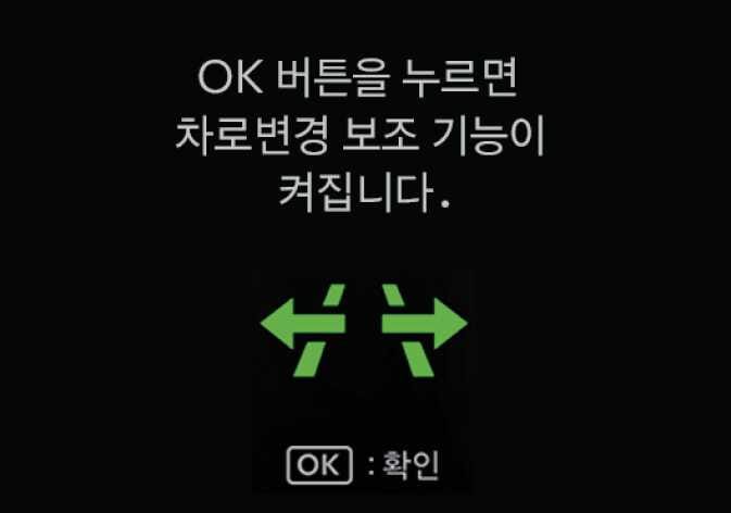 클러스터에 고속도로 차로변경 보조 기능의 사용 여부를 묻는 안내문이 표시될 때 'OK'를 누르십시오.