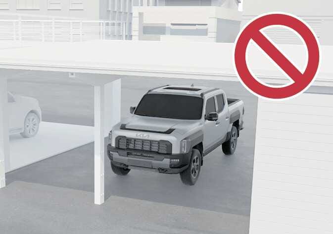 N_TK25E132트럭 등 적재함 높이가 높은 대형 차량 주변에서 원격 스마트 주차 보조를 사용하면 접촉 사고가 발생할 수 있습니다. 원격 스마트 주차 보조를 사용하지 말고 직접 주차 또는 출차하십시오.