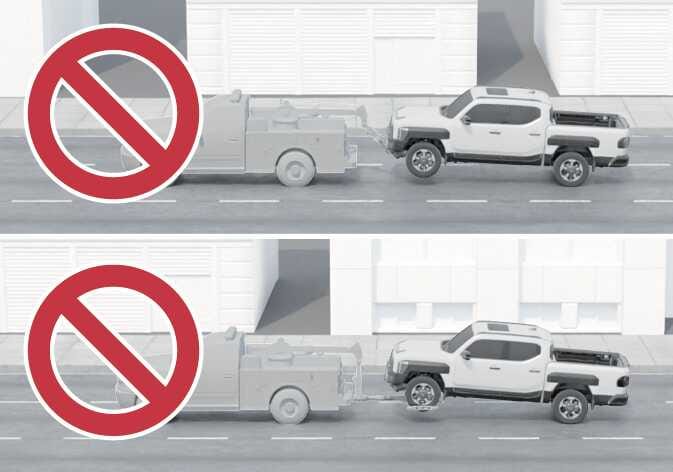 만일 두 바퀴를 통해 견인이 필요할 경우, 구동되는 바퀴를 지면에 닿지 않도록 차량을 띄운 후 견인하십시오.