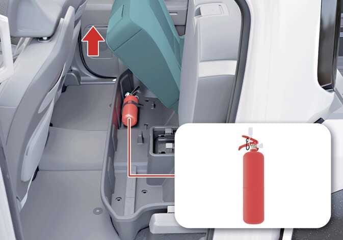 소화기를 2열 시트 보관함에 보관하여 사용하십시오.