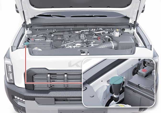 워셔액 보충 시에는 가급적 순정 워셔액 사용을 권장합니다. 추운 날씨에는 외부 온도에 따라 빙결될 수 있으므로 반드시 겨울용 워셔액을 사용하십시오.