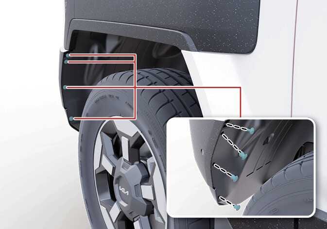 도구를 이용하여 휠가드 패스너를 탈거한후 휠가드를 탈거하십시오.