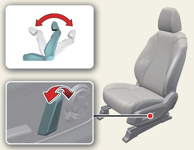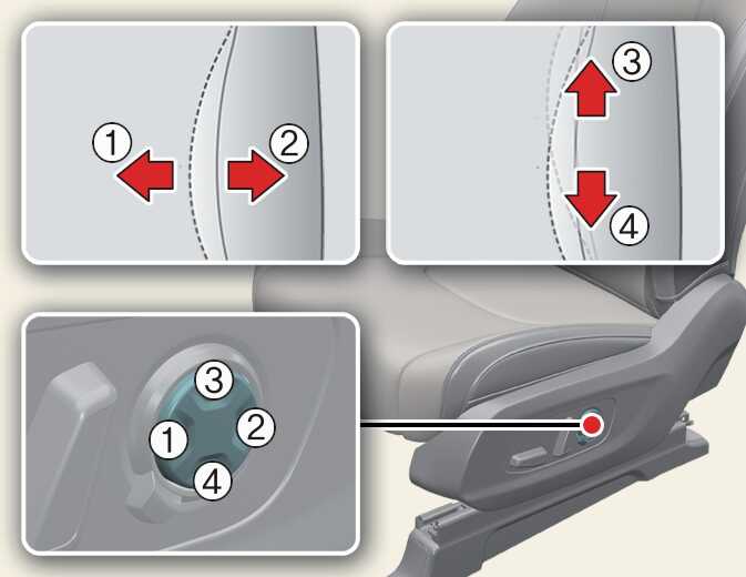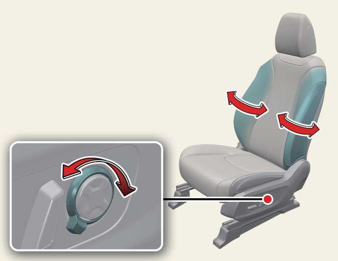 조절 스위치 조작 시 필요 이상의 힘을 스위치에 가하면 다른 부위까지 시트가 움직일 수 있습니다. 적당한 힘을 가하여 조절하십시오.