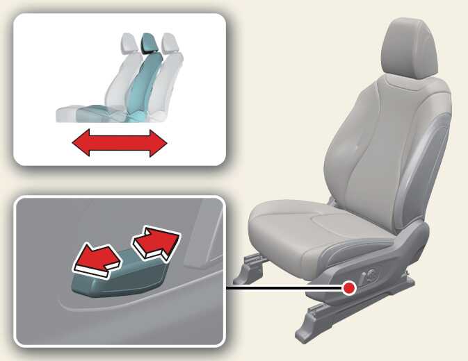 조절 스위치를 앞 또는 뒤로 움직이면 시트가 앞 또는 뒤로 이동합니다. 원하는 위치에 이르면 스위치에서 손을 떼십시오.
