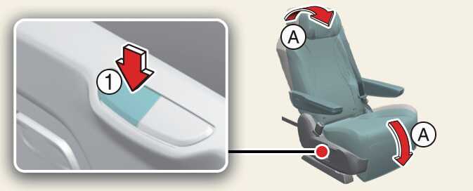 프리미엄 릴렉션 시트가 작동된 상태에서 원터치 스위치의 뒷부분(1)을 약 0.5초 이상 누르면 미리 저장된 표준 위치로 돌아옵니다.