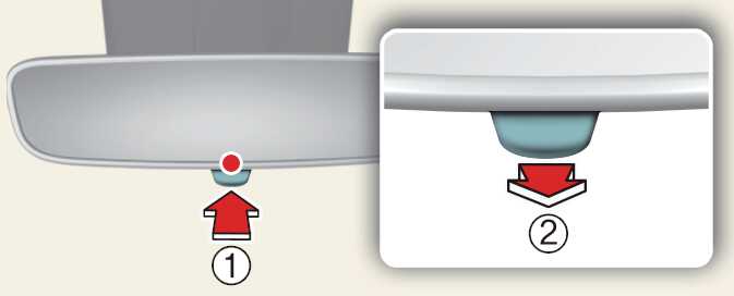 야간 주행 시 주야 변환 레버(1)를 운전자 방향으로 당기면(2) 뒤 차량의 전조등 불빛으로 인한 눈부심을 줄일 수 있습니다.