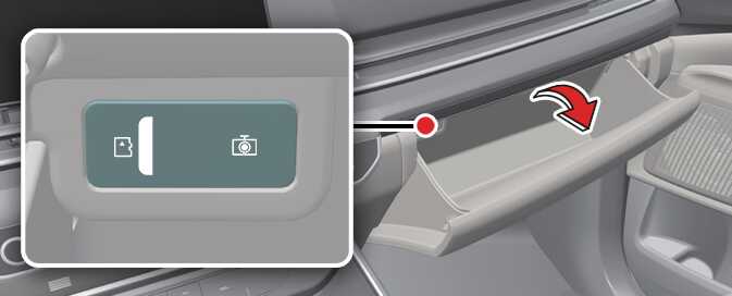 빌트인 캠 SD 메모리 제거/삽입 OKA4033054 차량이 출고될 때 SD 메모리는 메모리 카드 단자에 삽입되어 있습니다. SD 메모리 제거/삽입 방법을 확인하신 후 안전하게 메모리를 제거하거나 삽입하십시오.