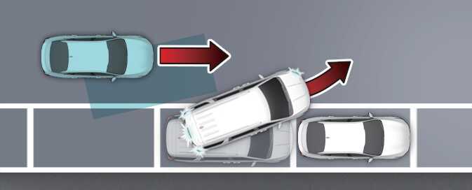 전진 출차 시 후측방에서 다가오는 차량과의 충돌 위험이 판단되면 충돌하지 않도록 제동을 도와줍니다.