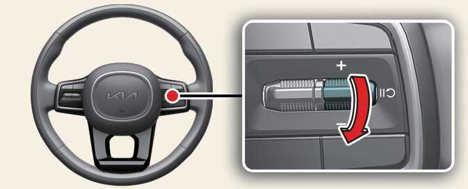 「+」 스위치를 위로 올리거나 「-」 스위치를 아래로 내려 원하는 속도를 설정하십시오. 「+」 스위치를 위로 계속 올리거나 「-」 스위치를 아래로 길게 내리고 있으면 10 km/h씩 속도가 증가하거나 감소합니다.