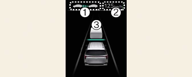 스마트 크루즈 컨트롤의 상태 표시를 보려면 클러스터를 주행 보조 뷰로 설정하십시오. 클러스터를 주행 보조 뷰로 설정하는 방법은 사용 설명서 3장의 내용을 참고하십시오.