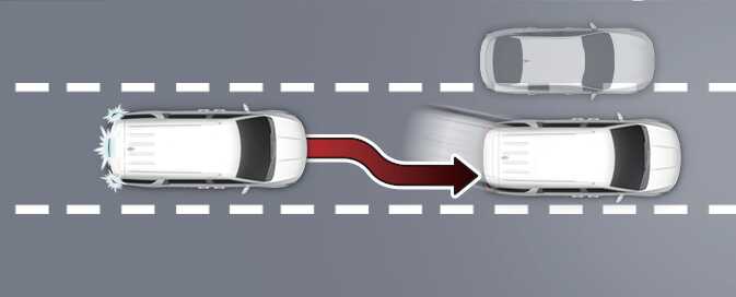 주행속도가 약 60 km/h 이상인 경우, 옆 차로에 근접 차량이 있으면 차로 내에서 반대 방향으로 편향하여 주행하도록 도와줍니다. 옆 차로 모두에 근접 차량이 있으면 편향하여 주행하지 않습니다.