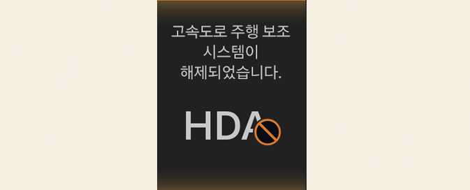 계속해서 스티어링 휠을 잡지 않으면, 고속도로 주행 보조와 차로 유지 보조가 동시에 꺼집니다.