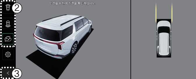 서라운드 뷰 모니터 화면의 뒤로 가기 버튼(3)을 누름