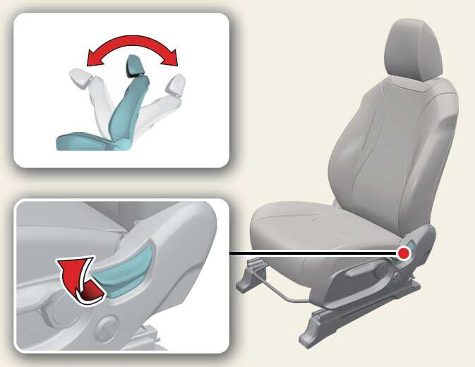 시트에 조심히 기대어 원하는 위치로 조절하십시오. 조절 레버를 놓으면 고정됩니다.