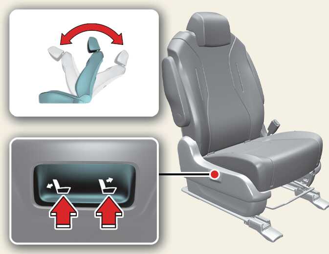 앞쪽 또는 뒤쪽 조절 스위치를 누르면 등받이 각도가 앞 또는 뒤로 조절됩니다. 원하는 위치에 이르면 스위치에서 손을 떼십시오.