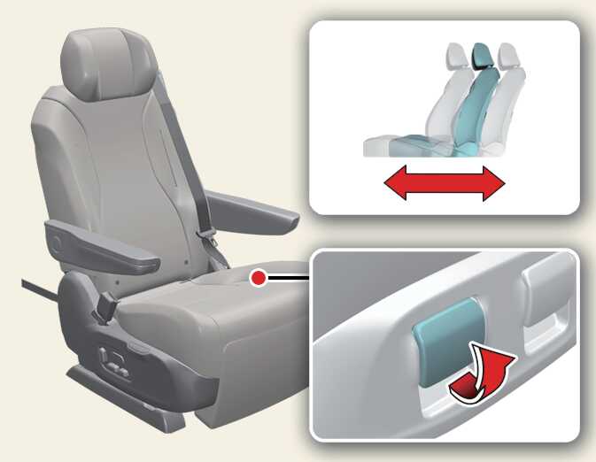 7인승 2열 시트 후방 이동 시에는 먼저 좌우 조절 레버로 시트를 차량 안쪽으로 움직인 다음 뒤로 미십시오.