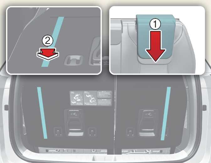 시트 격납 레버를 들어 올리면 시트 등받이가 접히면서 시트 하단의 고정이 해제됩니다. 이때 레버를 잡은 상태로 시트를 뒤쪽으로 당기면 시트가 격납됩니다.