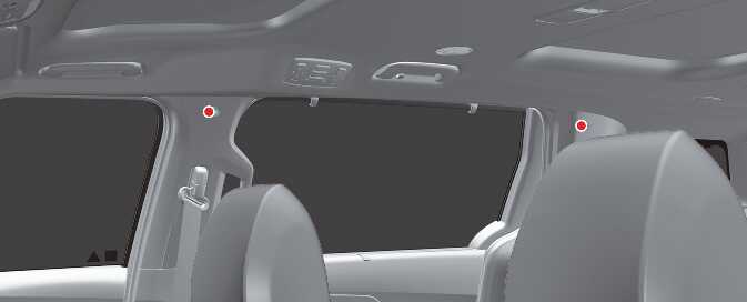 사이드 및 커튼 에어백이 있는 위치에는 어떤 물건도 설치하지 마십시오. 또한, 커튼 에어백이 팽창되는 부근(도어, 도어 유리창, 앞/뒤 옆의 필러 트림, 루프 사이드레일)에도 물건을 부착하지 마십시오.