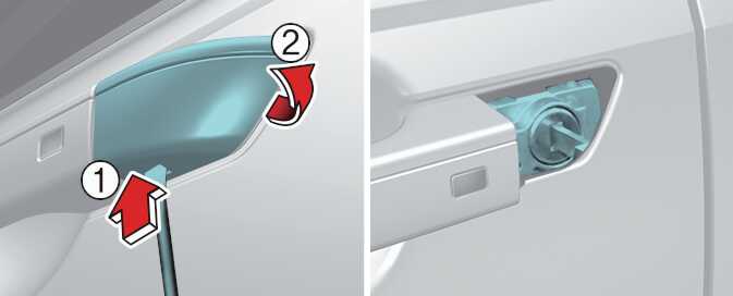 비상시 커버(2) 탈거 후 비상 키를 이용하여 운전석 도어만 잠그거나 열 수 있습니다.