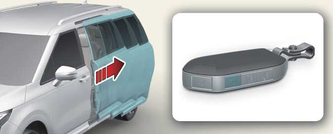 인포테인먼트 시스템 내 설정 화면에서 설정 → 차량 → 도어→ 원격 파워 도어 동시 열림→ 좌/우 슬라이딩 도어 및 테일게이트 열림, 좌/우 슬라이딩 도어 열림을 설정합니다.