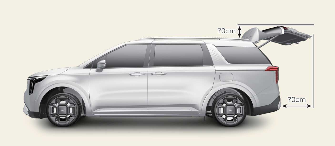 파워 테일게이트(또는 스마트 테일게이트)를 안전하게 열거나 닫을 수 있도록 차량 주변에 최소 여유 공간을 확보하십시오. 최소 공간이 확보되지 않은 상태에서 파워 테일게이트를 작동하면 테일게이트가 주변의 물체(벽, 천장, 주변 차랑 등)에 부딪쳐 손상될 수 있으며, 주변 사람에게 부상을 입힐 수 있습니다.