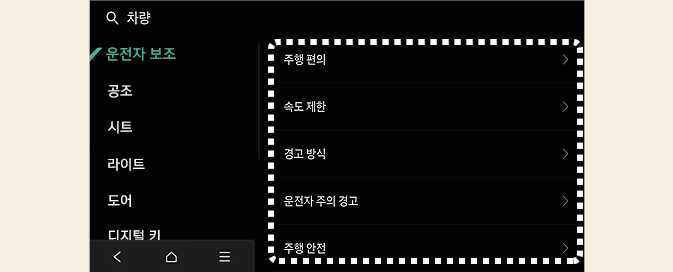 운전자 보조 설정 항목