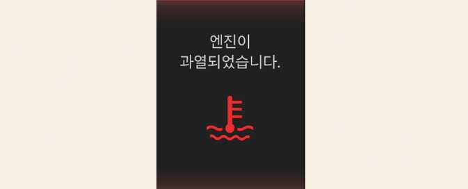 엔진이 과열되었습니다 OMQ4033133 냉각수 온도가 120±3°C 이상일 때 경고 메시지가 표시됩니다. 엔진 과열의 가능성이 있으므로 운전을 중지하고 가까운 자사 직영 서비스센터 또는 서비스협력사로 문의하시기 바랍니다.