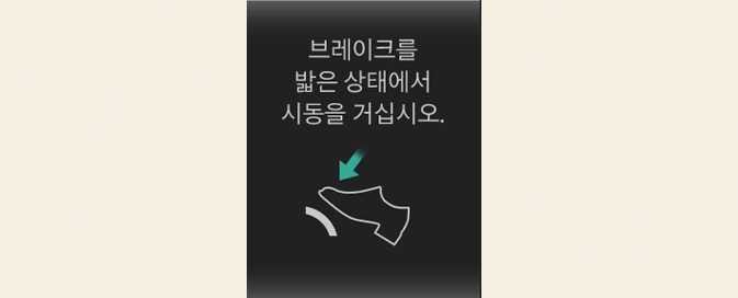 변속할 때 브레이크 페달을 밟지 않으면 표시창에 경고 메시지가 나타납니다.